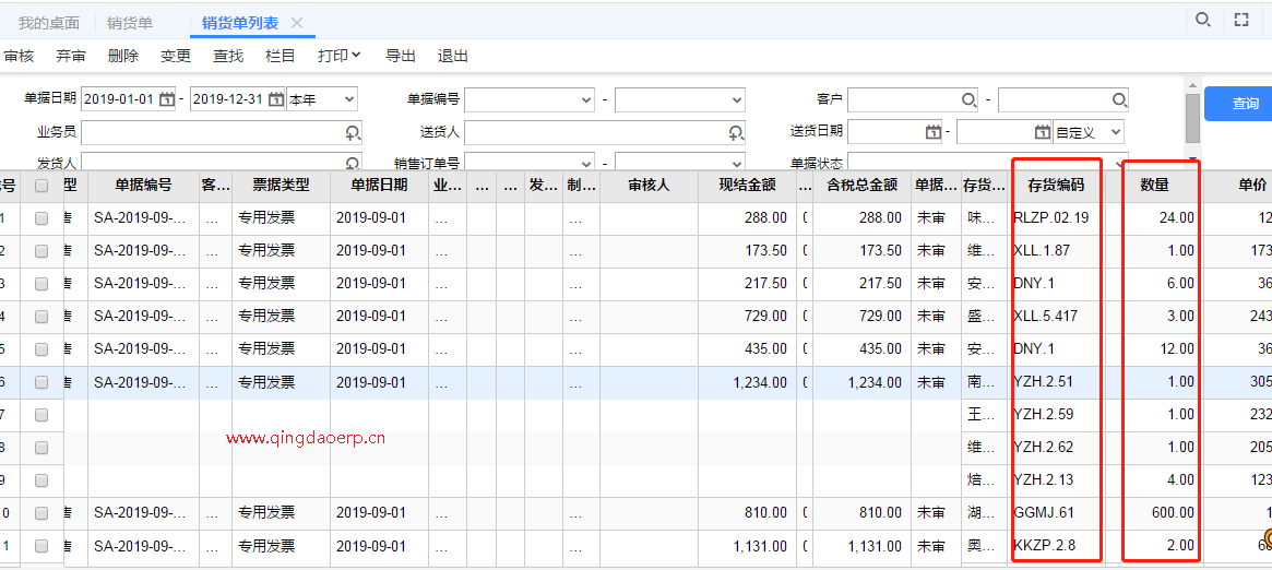 用友T+銷貨單列表顯示存貨及數(shù)量明細(xì)