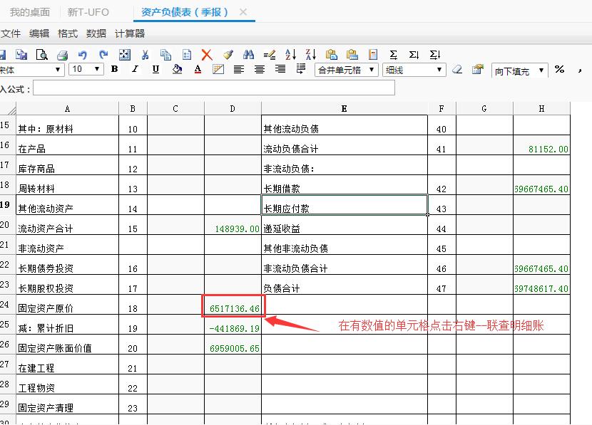 新T-UFO可以聯(lián)查明細(xì)賬和余額表,具體操作是:鼠標(biāo)點中需要聯(lián)查的單元格,右鍵選擇【明細(xì)賬】或【余額表】即可。